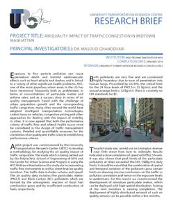 A pilot project was commissioned by the University Transportation Research Center (URTC) to develop a methodology for studying the air quality impact of traffic congestion. The study which is being carried out by the Polytechnic School of Engineering of NYU and the Center for Urban Science and Progress is using the NYC Midtown Manhattan as the study site incorporating traffic flow instruments as well as street level air quality monitors. The traffic data includes volume and speed. The air quality data includes fine particulate matter (PM2.5) and Black Carbon (BC), pollutants which are formed by the atmospheric reaction of fossil fuel combustion gases and by insufficient combustion of fuels, respectively.