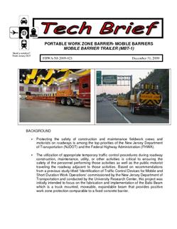 Protecting the safety of construction and maintenance field crews and motorists on roadways is the top priority of the New Jersey Department of Transportation (NJDOT) and the Federal Highway Administration (FHWA). More than 40,000 people are injured each year as a result of motor vehicle crashes in work zones. In addition, fatalities from work zone crashes have increased more than 50 percent in the last 5 years. The Mobile Barrier, a portable work zone protection device available, has been identified as having the potential to improve the safety of highway workers and motorists. The objective of this project is to increase safety at highway work zones for maintenance & construction field workers and motorists through implementation of a mobile work zone protection device that serves as an extendable physical barrier to protect the flank of a work zone. This project will oversee and advise NJDOT efforts to deploy a mobile barrier device in New Jersey.