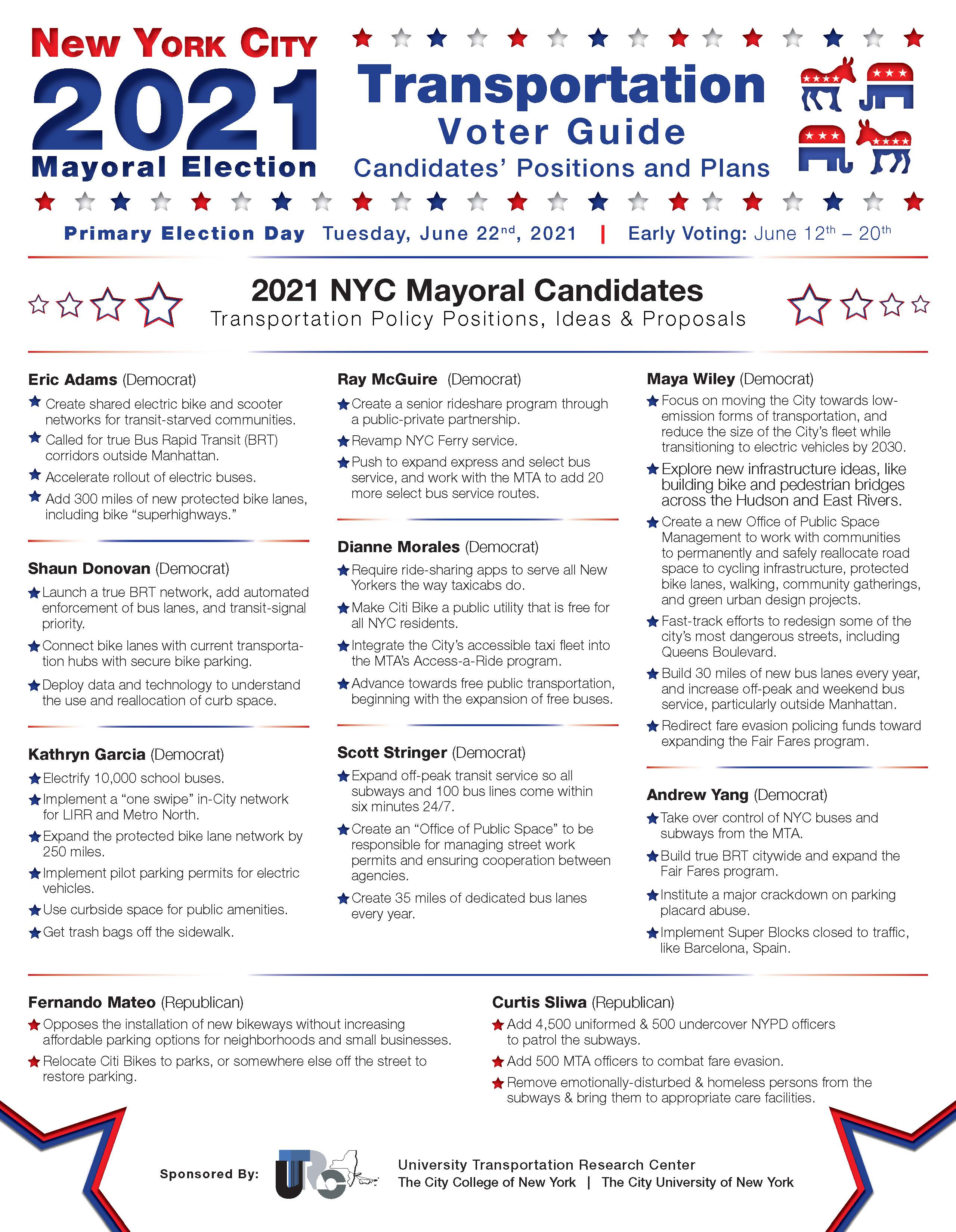 2021 NYC Mayoral Report - Transportation Policy Primer Voter Guide. Candidates’ Positions and Plans