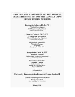 State-of-the-art technology is available which incorporates shredded scrap tire rubber known as crumb rubber modifier (CRM) as a modifier for asphalt cement in paving mixtures. CRM is the general term to describe all rubber particles obtained from the shredded of discarded tires which are reduced up to a size of 6.35 mm. Two technologies are most commonly used to incorporate crumb rubber in asphalt pavement applications, namely, the wet and dry process. The wet process, also known as the modified binder method, covers any method that blends the crumb rubber with the asphalt cement (AC) prior to incorporating the binder. The dry process applies to technologies that mix the crumb rubber with the aggregate prior to being charged with the asphalt binder. In 1991, the Intermodal Surface Transportation Efficiency Act (ISTEA), Section 1038, mandated the use of CRM in asphalt paving mixtures for all states including Puerto Rico. This report describes the first major research effort conducted at the University of Puerto Rico at Mayagez (UPRM) to characterize hot mix asphalt (HMA) paving mixtures using crumb rubber as a modifier.