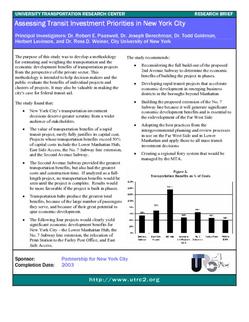 <p>The purpose of this study was to develop a methodology for estimating and weighing the transportation and the economic development benefits of transportation projects from the perspective of the private sector. This methodology is intended to help decision makers and the public evaluate the benefits of individual projects and clusters of projects. It may also be valuable in making the city's case for federal transit aid.</p>