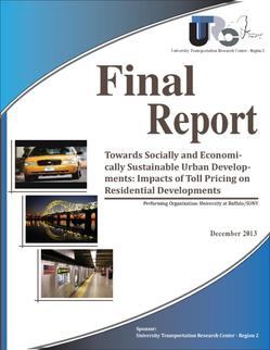 The goal of this research is to investigate the effects of road pricing on residential land use choices and to help select pricing policies that foster socially and economically sustainable residential development in urbanized residential areas. Under this goal, a residential land use choice model in logit form with shared aggregated data was developed. The model was designed to assess the impacts of various toll pricing policies and the resulting accessibility on a residential land use choice pattern. We selected the Great Buffalo-Niagara metropolitan area for a case study. The multinomial logit model was built at the census tract level, with four residential land use types—single-family houses, multiple-family houses, apartments and others—as main choice alternatives. With the estimated model, the following hypothetical toll pricing scenarios were tested are: (I) uniform increase of tolls for the entire region, (II) distance-based tolls for the entire region, and (III) uniform tolls for entering the downtown area only. We found that toll pricing strategies affect accessibility of zones, shaping a trend and pattern of the residential land use. More specifically, increased toll charges would urge people to choose multi-family house and apartments, encouraging a sustainable high density residential land use pattern.