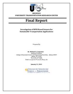 <p>Through support of a University Transportation Research Center Faculty Development Minigrant an invest igation was made into the use of RFID based sensing technologies for transportation purposes. Transportation applications would potent i a l ly include the wireless detection of overweight t rucks, remote and automated emissions monitoring of vehicles, corrosion of infrast ructure and transportation security applications. Sustainable transport a t ion would be improved through savings real ized by a reduction in the cost of sensor technologies as well as the signi ficant cost savings and environmental impacts realized by reducing the damage to roads and bridges by the efficient detection of overweight t rucks, a reduction in the number of vehicles with emissions violations, in-situ detection of inf rastructure cor rosion to enable just in t ime maintenance and improved safety of mass transi t. Commercially available RFID tags cost $0.1 and are being used in a wide range of applications including, shipping, warehouse management among others. Recent ly Wake Inc. has developed methods for incorporation of RFID tags into concret e structures for in-si t u measurement of the curing process. Whi le these tags cost more than $0.1, due to the enhanced packaging, they are able to measure the temperature of concrete structures to determine when the structure has cured. Typical protocols require that concrete 'cure' for a mandatory 28 days so that its maximum strength is achieved.</p>