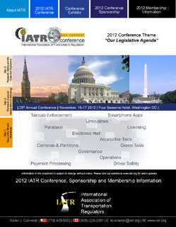 PROJECT DETAILS Publication Year 2012 Publication Type Event Brochure Event 2012 International Association of Transportation Regulators (IATR) Conference