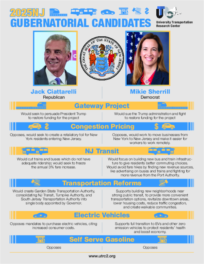 The 2025 New Jersey Gubernatorial Candidates Transportation Voter Guide was prepared by the University Transportation Research Center (UTRC).