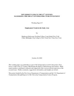 <p>The objective of this working paper is to show trends in employment in different industries in the study area. Two sets of tables and figures are presented to illustrate these trends. Tables 1A through 1D, and figures 1 through 10 show trends in non-farm employment for different labor areas from 1980 to 1999. Labor areas are also called Primary Metropolitan Statistical Areas (PMSA?s). In some cases, these labor areas consist of several counties. The study area consists of 14 counties that form 7 labor areas as indicated in the following table. Tables 2A through 2D and figures 11 through 26 show trends in private sector covered employment1 in the 14 county study area from 1991 to 1997. Data on non-farm employment in the different labor areas were obtained from the following web site maintained by the U.S. Department of Labor: www.bls.gov. Data on covered employment at the county level were obtained from the New Jersey Data Center: www.state.nj.us/labor/lra/njsdc.htm</p>