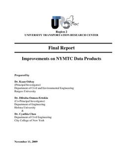 In this research project, first, a thorough review and examination of NYMTC data products was performed to identify specific issues about the existing data products, website and the current data maintenance process a t NYMTC. Then, appropriate specific solutions, both data and website, and process oriented, were recommended for any issues identified, while taking into consideration the latest technological tools, results of the NYMTC?s recent stakeholder survey, the best practices in various fields in the USA and around the world, and NYMTC?s current data maintenance practices. Finally, an overall evaluation of the project?s potential impacts was performed.