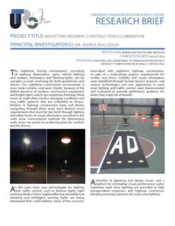 The nighttime driving environment, consisting of roadway illumination, signs, vehicle lighting and markers, delineators and flashing lights, can be complex or even confusing for both pedestrians and drivers. The nighttime construction environment is even more complex and even chaotic because of the added presence of workers, construction equipment and bright lights (which are sometimes flashing). Work zones at night often involve changing conditions and new traffic patterns that are unfamiliar to drivers. Workers in highway construction areas and drivers navigating through these areas have distinct visual requirements that must be met both through lighting and other forms of visual information provided in the work zone. Conventional methods for illuminating work zones are prone to producing glare for workers and for drivers. At the same time, new technologies for lighting and traffic control, such as balloon lights, light emitting diodes (LEDs), highly reflective retroreflective sheeting and intelligent warning lights are being developed that could address many of the concerns associated with nighttime highway construction. As part of a multi-phase project, requirements for worker and driver visibility and visual information were identified through human factors research, and various technologies and new approaches to work zone lighting and traffic control were demonstrated and evaluated to provide preliminary guidance for when they might be of benefit. A checklist of planning and design issues, and a method for estimating visual performance under nighttime work zone lighting are provided to help transportation engineers and highway contractors identify promising solutions for work zone lighting.