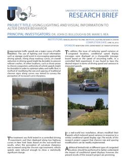 Inappropriate traffic speeds are a major cause of traffic fatalities. The use of lighting and visual information such as signage could assist in encouraging appropriate driving speeds. Along sharp roadway curves, an overall reduction in driving speed might be desirable to prevent rollover crashes. At other locations, such as those prone to chronic congestion, uniformity of vehicle speeds might be desirable in order to optimize safety and traffic flow. A method of modifying the size and spacing of traditional chevron signs along curves was tested to convey the perception of increased curve sharpness.