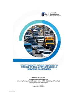 | Title: Equity Impacts of NYC Congestion Pricing on Taxi and For-Hire Vehicle Drivers and Passengers Author(s): Matthew W. Daus, Esq Publication Year: 2022 There are three principal types of equity considerations that relate to the distribution of benefits and burdens of congestion pricing: (1) income equity, (2) geographic equity, and (3) modal equity. This report attempts to look at first two,… |