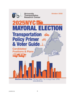| Title: 2025 NYC Mayoral Candidates Transportation Policy Primer & Voter Guide Author(s): Matthew W. Daus, Esq Publication Year: 2025 Every four years, the University Transportation Research Center (UTRC) releases an independent, non-partisan report analyzing the transportation policy positions of New York City’s mayoral candidates. The report is part of a long-standing effort… |