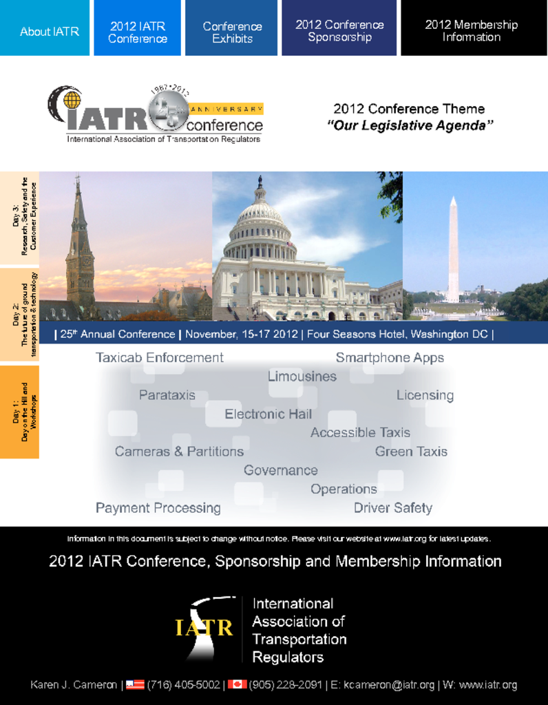PROJECT DETAILS Publication Year 2012 Publication Type Event Brochure Event 2012 International Association of Transportation Regulators (IATR) Conference