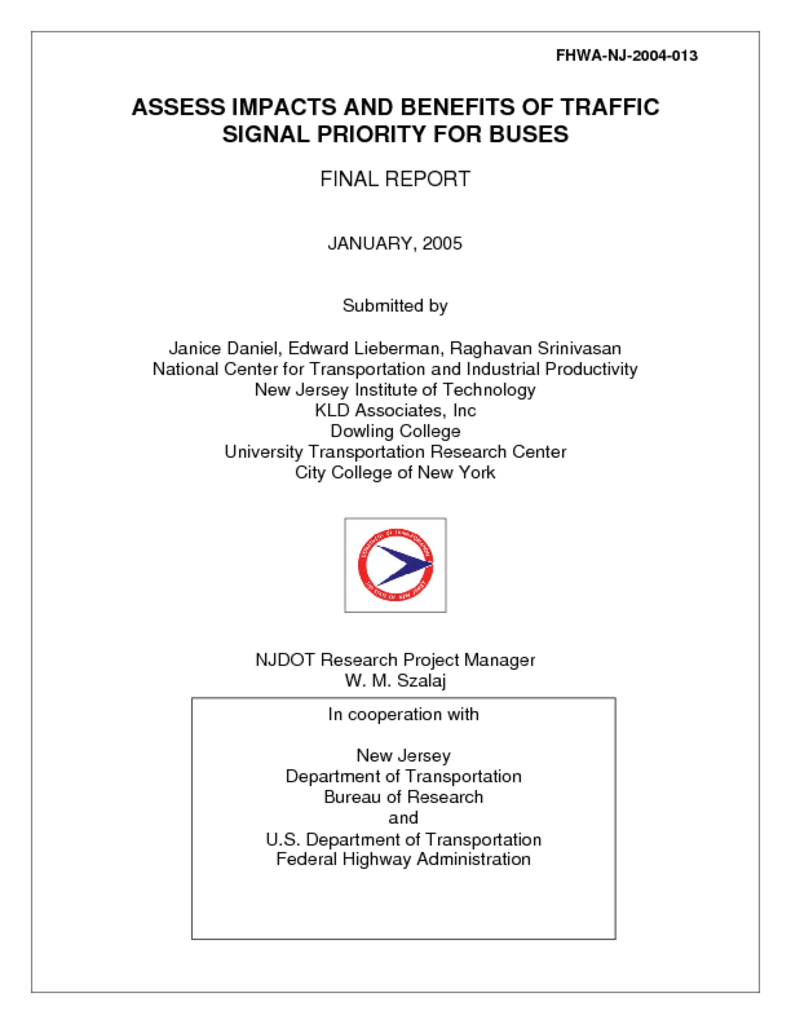 the implementation issues associated with the use of bus signal priority in New Jersey and to assess the benefit