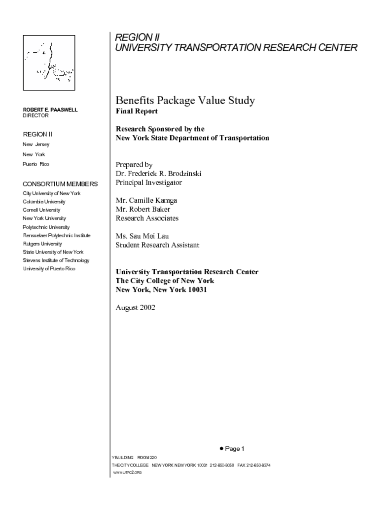 Recruiting entry-level civil engineers and information technology specialists has become more competitive and the New York State Department of Transportation is experiencing difficulty in attracting people to these positions. Compared to the private sector, NYSDOT’s entry level salaries are lower but rise more quickly. NYSDOT believes their benefit package is better, however, this has never been quantified. If their benefit package is more valuable than that of NYSDOT’s competitors, that would offset lower starting salaries and be an attractive component of a total compensation package. Competitive compensation should enhance their recruitment efforts. This study was conducted to determine if in fact the benefit’s package is worth more than NYSDOT’s competitors. The initial salary offered by NYSDOT to entry level civil engineers is below its competition. The salary after the probation period however, is quite competitive. Fringe benefits in most categories meet or exceed those offered by the competition with exceptions of life insurance and maximum tuition reimbursement per year. It is estimated that the value of NYSDOT’s fringe benefit package is $14,352.00. NYSDOT’s competition spend a great deal more money on advertising in their recruitment efforts. Other State DOT’s far exceeded NYSDOT’s travel expenditures for recruitment. NYSDOT spent three times what the others spent on support materials.