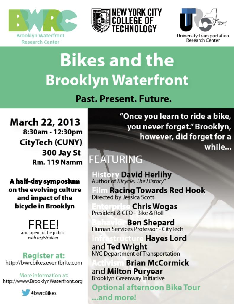 PROJECT DETAILS Publication Year 2013 Publication Type Event Brochure Event Bikes and the Brooklyn Waterfront: Past, Present, and Future