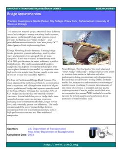 This three-part research project examined three different sets of technologies ? energy-absorbing fender systems, pre-cast or prefabricated bridge deck systems, report presents the findings and 'smart bridges' ? and provided recommendations for how New Jersey DOT should proceed with implementing them.