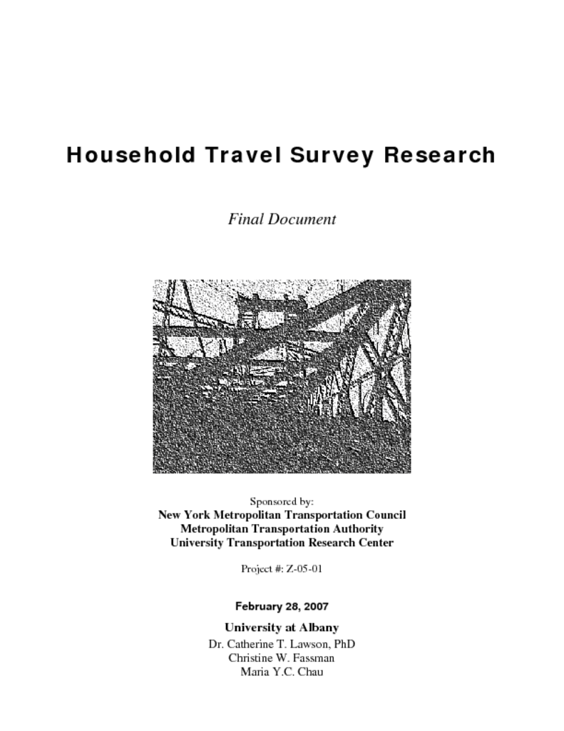 New York Metropolitan Transportation Council (NYMTC) and the Metropolitan Transportation Authority (MTA) are planning an effort for 2005/2006 to collect data in order to update the Best Practice Model (BPM) and Regional Transportation Forecast Model (RTFM). This research project will assist NYMTC?s Technical Survey Unit by documenting issues incurred in the planning and process of the Regional Travel Household Interview Survey 1996/1997 (RT-HIS) and the Comprehensive Travel Telephone Survey 1989 (CTTS ). Also to be included in this document is research describing new methodology and new technology, that has been recently been used.