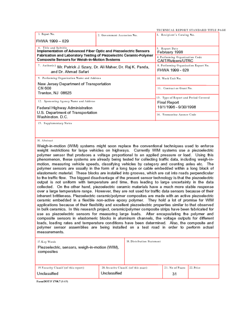 to the traffic flow. The biggest disadvantage of the present sensor technology is that the piezoelectric