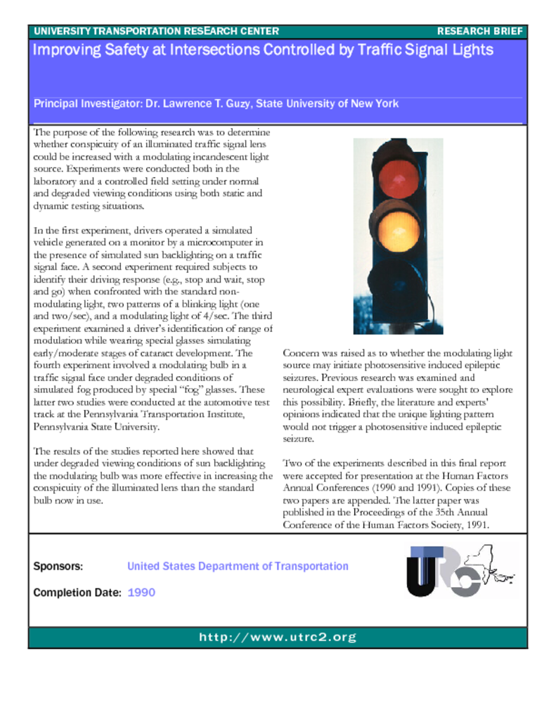 The purpose of the following research was to determine whether conspicuity of an illuminated traffic signal lens could be increased with a modulating incandescent light source. Experiments were conducted both in the laboratory and a controlled field setting under normal and degraded viewing conditions using both static and dynamic testing situations.