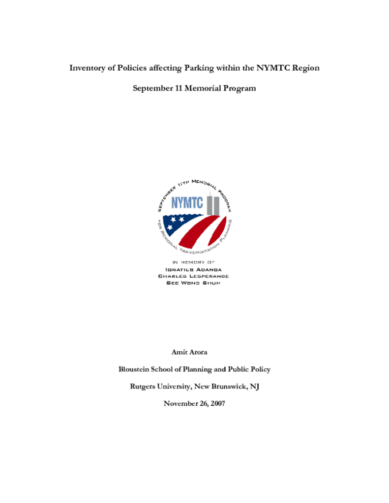 Parking is one of the key components of any new development or a redevelopment project. It is one of the prime issues for home owners, businesses, residents and policy makers across different municipalities in the region. The minimum parking requirements as required by the municipal codes affect the site design and density of the structure. Zoning ordinances, which specify the parking requirements, can be an effective tool in regulating the supply and eventually the demand for parking.