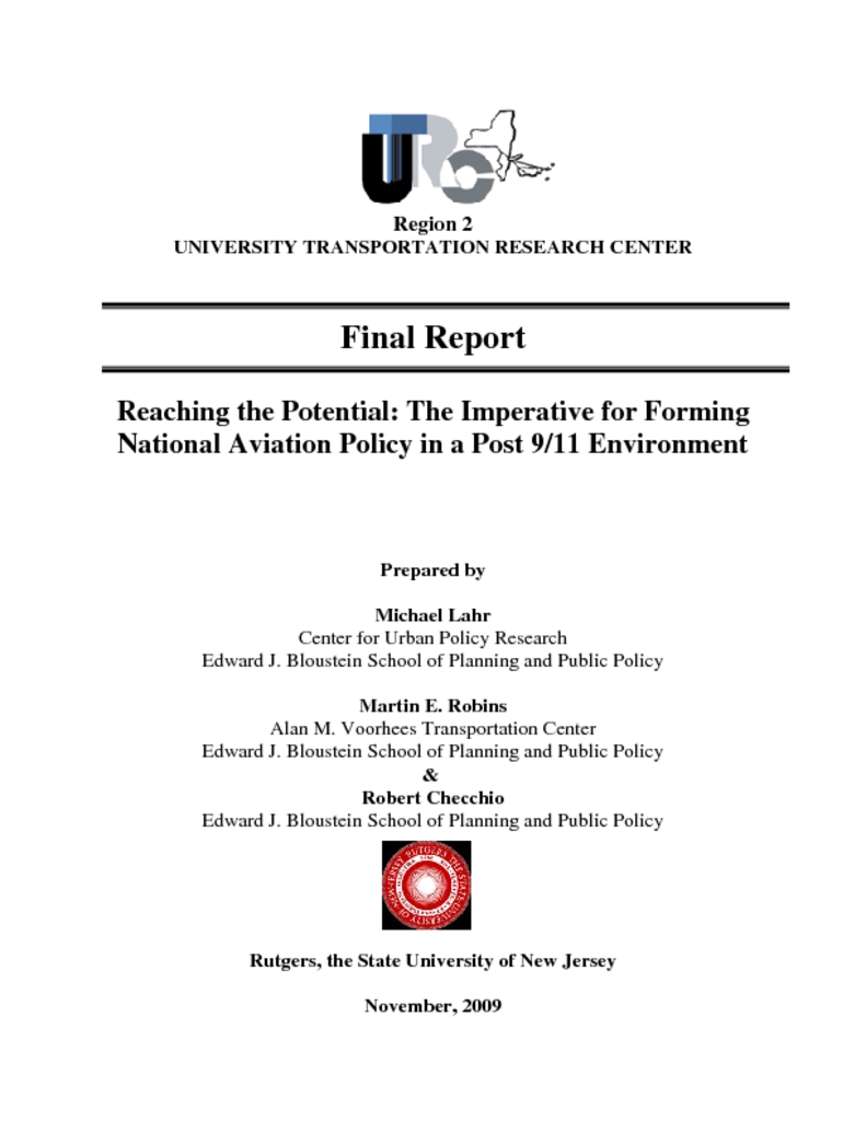 <p>The air travel industry is in turmoil. Bankruptcies of commercial air carriers has become commonplace. Increasing fuel costs make profitability wishful thinking for many carriers, and many cities are losing scheduled air service as carriers focus on only the most profitable routes. Complaints about delays are the norm. The benefits that will result from technological improvements are years away. Many in both the private and public sectors describe the system as 'broken' and call out for changes in national aviation policy. Why should we care about the state of the aviation system? By connecting cities with quick and affordable transportation, economies expand from cities to regions to mega regions, creating jobs and improving quality of life, even for people who never board a commercial airliner. Regions with access to airports leads experience greater job growth compared to regions without airports. In a li ttle over a century, air travel grew from a curiosity to the source of over five percent of the U.S. Gross Domestic Product. Few question the need for a robust U.S. air transportation system. With general agreement as to the need for access to air transportation, why is it so difficult to develop federal level policy that would help forward the goals of a safe, effective and efficient air transportation system? Differences in political agendas, perspectives towards government roles and diverse vested interests make policy formation a challenge at best, impossible at worst. Developing solutions to the seemingly intractable problems faced by the aviation industry is so difficult that Department of Transportation Secretary Ray LaHood has recently called for the formation of a Federal Advisory Committee on the Future of Aviation. Policymakers need to address the challenges of developing a national aviation policy before global events relegate the U.S. aviation system to second rate status.</p>