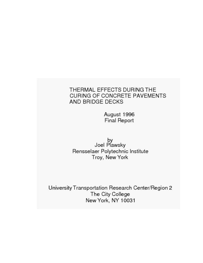 This project will use fundamental heat and mass transfer principles to predict the temperature. water content. and unreacted cement profiles that exist during the first 72 hours of curing in concrete pavements and bridge decks. The goal of the project is to determine under what conditions concrete can be successfully placed. All pertinent heat and mass transfer mechanisms will be considered. A two-dimensional model of a bridge deck will be developed and model results will be compared with actual experimental data. Traditional concrete and concrete containing flyash and microsilica additives will be considered. Where possible, the information from this program will be used to calculate the thermal stresses in the concrete.