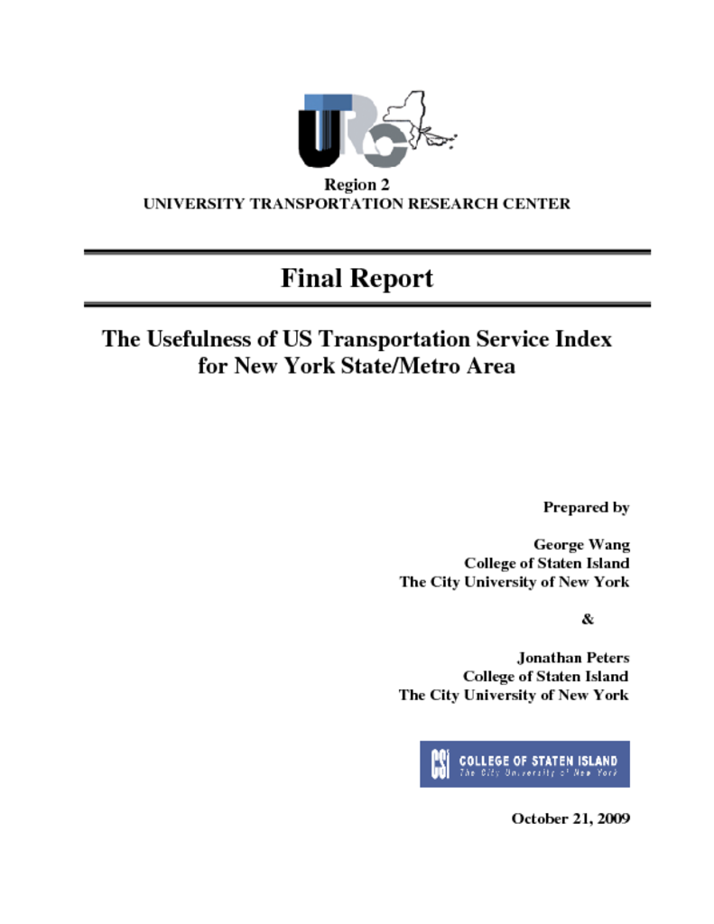in New York, we propose this study to assess the usefulness of the US Transportation Service Index for New