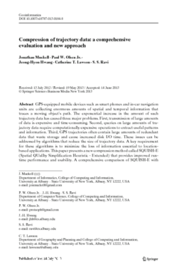| Title: Compression of trajectory data: a comprehensive evaluation and new approach Author(s): Dr. Catherine T. Lawson, Dr. Sekharipuram S. Ravi, Dr. Jeong-Hyon Hwang Publication Year: 2013 GPS-equipped mobile devices such as smart phones and in-car navigation units are collecting enormous amounts of spatial and temporal information that traces a moving object’s path. The exponential increase in the amount of such trajectory… |