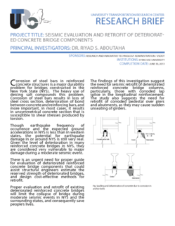 | Title: Seismic Evaluation and Retrofit of Deteriorated Concrete Bridge Components Author(s): Dr. Riyad S. Aboutaha Publication Year: 2013 Corrosion of steel bars in reinforced concrete structures is a major durability problem for bridges constructed in the New York State (NYS). The heavy use of deicing salt compounds this problem. Corrosion of steel bars… |