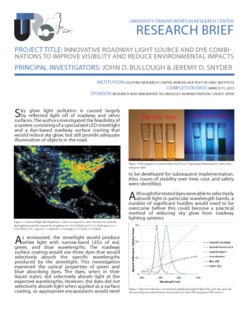 | Title: Innovative Roadway Light Source and Dye Combinations to Improve Visibility and Reduce Environmental Impacts Author(s): Dr. John Bullough Publication Year: 2013 Sky glow light pollution is caused largely by reflected light off of roadway and other surfaces. The authors investigated the feasibility of a system consisting of a specialized LED streetlight and a dyebased roadway… |