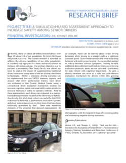 | Title: A Simulation-based Assessment Approach to Increase Safety among Senior Drivers Author(s): Dr. Kevin Hulme Publication Year: 2013 In the U.S., there are about 38 million licensed drivers over age 65; about 1/8 of our population. By 2024, this figure will DOUBLE to 25%. The current research is intended to address the driving capabilities of our… |