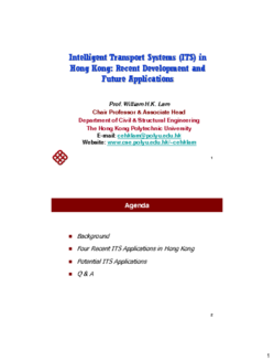 | Title: Presentation - Intelligent Transport Systems (ITS) in Hong Kong: Recent Development and Future Applications Author(s): Publication Year: 2012 |