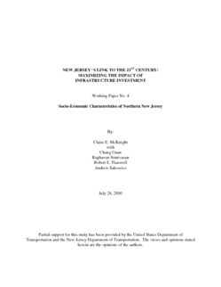 | Title: 4 - Socio-Economic Characteristics of Northern New Jersey Author(s): Dr. Robert E. Paaswell, Dr. Raghavan Srinivasan Publication Year: 2000 This working paper describes the socio-economic trends in the fourteen northern New Jersey counties which constitute the study area for the project: New Jersey: Link to the 21st Century. The paper is based on data primarily taken from the 1990… |