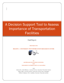 | Title: Decision Support Tool to Assess Importance of Transportation Facilities Author(s): Publication Year: 2008 Assessing the importance of transportation facilities is an increasingly growing topic of interest to federal and state transportation agencies. This work proposes an optimization based model that uses concepts and techniques of complex networks… |