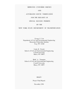| Title: Improved Customer Service and Automated Route Verification for the Issuance of Special Hauling Permits by the NYSDOT (Excerpts) Author(s): Publication Year: 1994 <p>This report presents a design for an electronic permit issuance system for overdimensional and/or overweight vehicles with nondivisible loads. The system has been designed in collaboration with, and for use by, the New York State… |