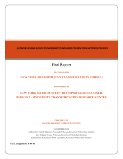 | Title: Comprehensive Survey of Emerging Technologies for the New York Metropolitan Area Author(s): Publication Year: 2008 Professors Satish Ukkusuri and Jose Holguin-Veras of Rensselaer Polytechnic Institute (RPI), as a result of an RFP process through the UTRC, have been selected by a selection committee to conduct an assessment of the emerging and promising… |