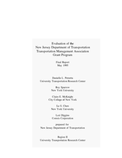 | Title: Evaluation of the NJDOT Transportation Management Association Grant Program (Executive Summary) Author(s): Publication Year: 1995 <p>The NJDOT TMA Grant Program gives qualified TMAs up to $400,000 annually to carry out traffic reduction and clean air initiatives. These dollars have funded the implementation of important national and state mandates. They have given the… |