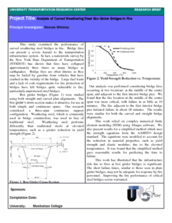 | Title: Analysis of Curved Weathering Steel Box Girder Bridges in Fire Author(s): Reeves Whitney Publication Year: 2016 This study examined the performance of curved weathering steel bridges in fire. Bridge fires can present a severe hazard to the transportation infrastructure system. In fact, a nationwide survey by the New York State Department of Transportation… |