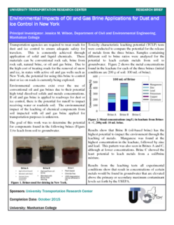 | Title: Environmental Impacts of Oil and Gas Brine Applications for Dust and Ice Control in New York Author(s): Jessica Wilson Publication Year: 2015 Transportation agencies are required to treat roads for dust and ice control to ensure adequate safety for travelers. This is commonly achieved through application of solid and liquid chemicals. These materials can be conventional rock salt,… |