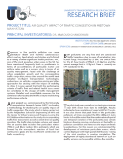 | Title: Air Quality Impact of Traffic Congestion in Midtown Manhattan Author(s): Dr. Masoud Ghandehari, Dr. John C Falcocchio, Dr. Rouzbeh Nazari Publication Year: 2014 Exposure to fine particle pollution can cause premature death and harmful cardiovascular effects such as heart attacks and strokes, and is linked to a variety of other significant health problems. NYC, one of the most… |